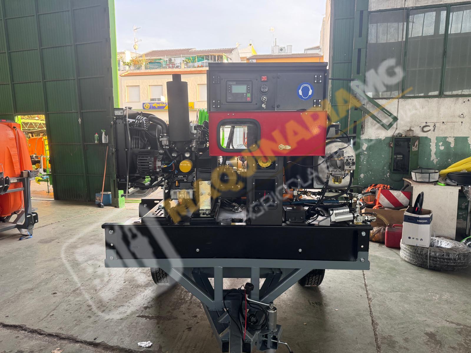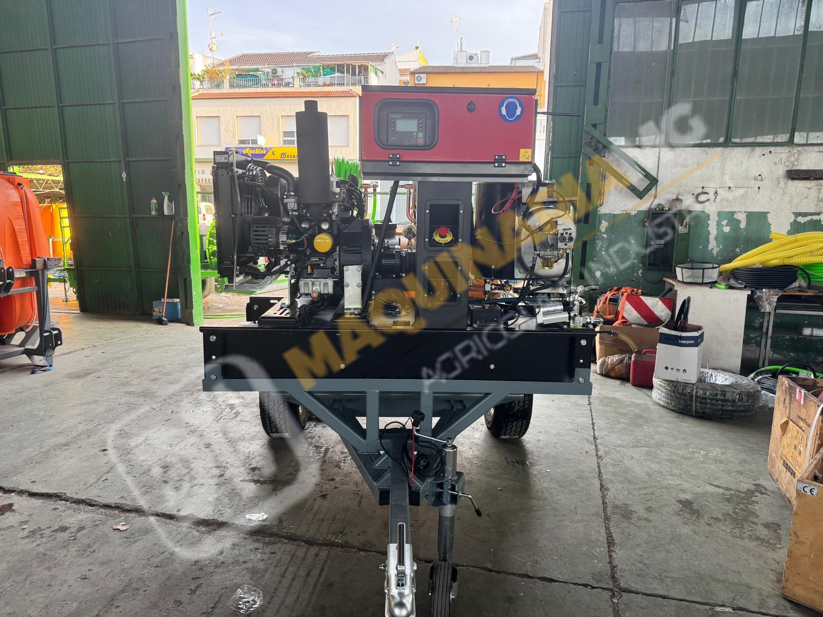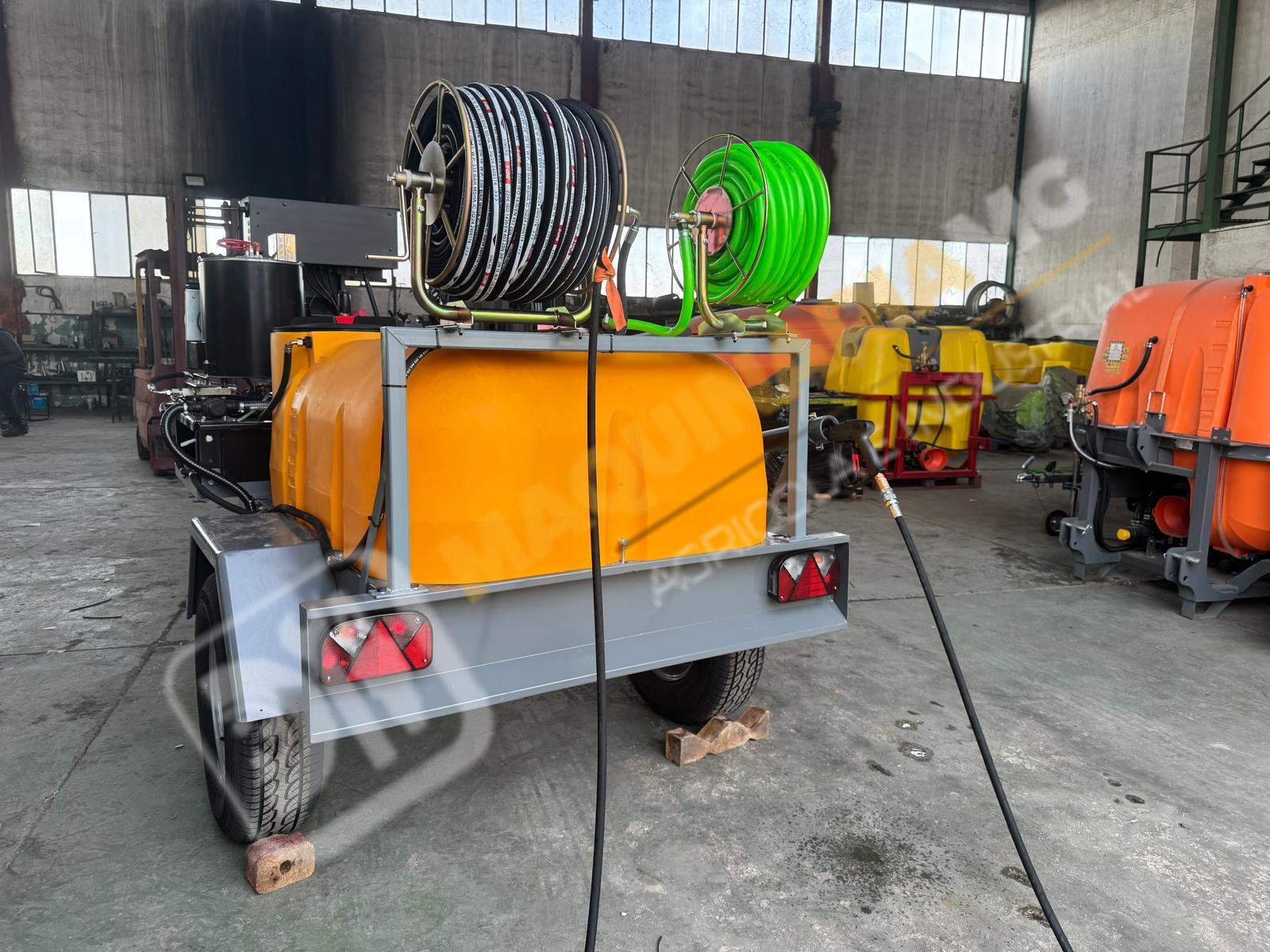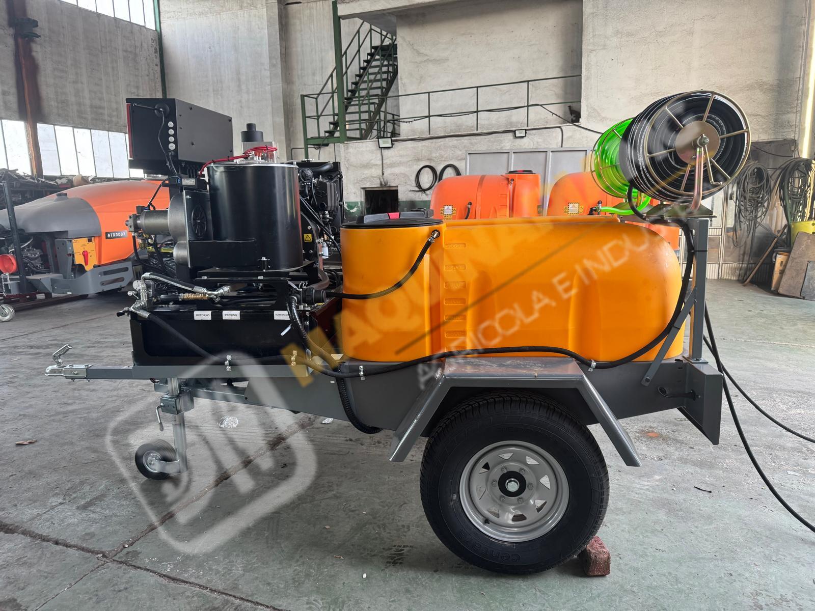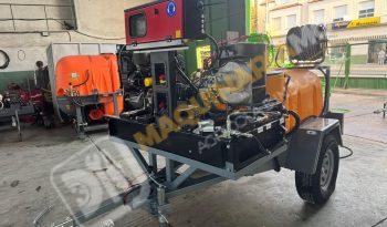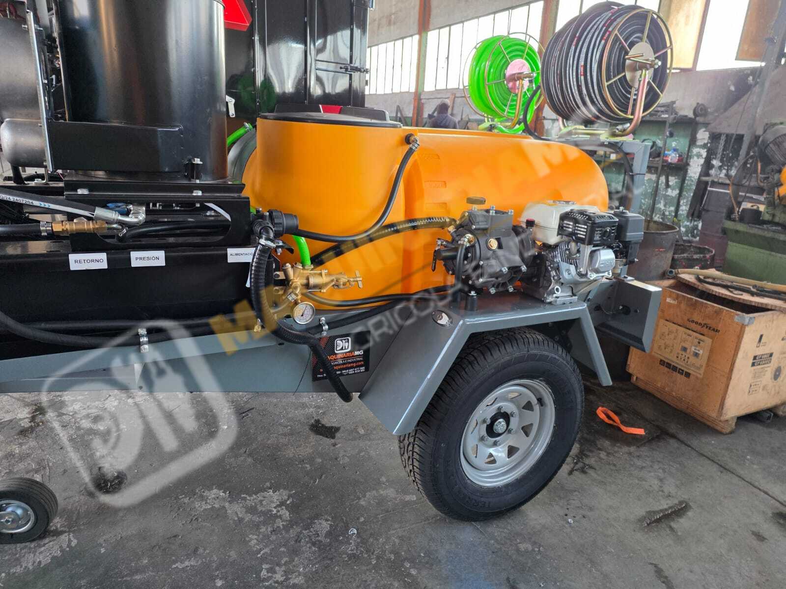 Equipo de limpieza con agua caliente 300 bares. Motor bicilindrico diesel, calentador para el agua diesel. Motor 20 CV. Bomba hasta 300 bares con 20 litros de caudal. Sistema de arranque y pare electrónico por ordenador. Motor refrigerado por agua. Enrollador de 100 metros de manguera. Pistola de limpieza profesional. Carro homologado con 1.000 litros de capacidad. Enrollador con 20 metros de manguera de suministro. Depósito de 100 litros para gasoil. Eje todoterreno de 1.500 Kg. Equipo independiente de inyección de producto con motor HONDA y bomba de 60 litros. Somos fabricantes y disponemos de varias capacidades. Para más información puede llamarnos al 627 477 965