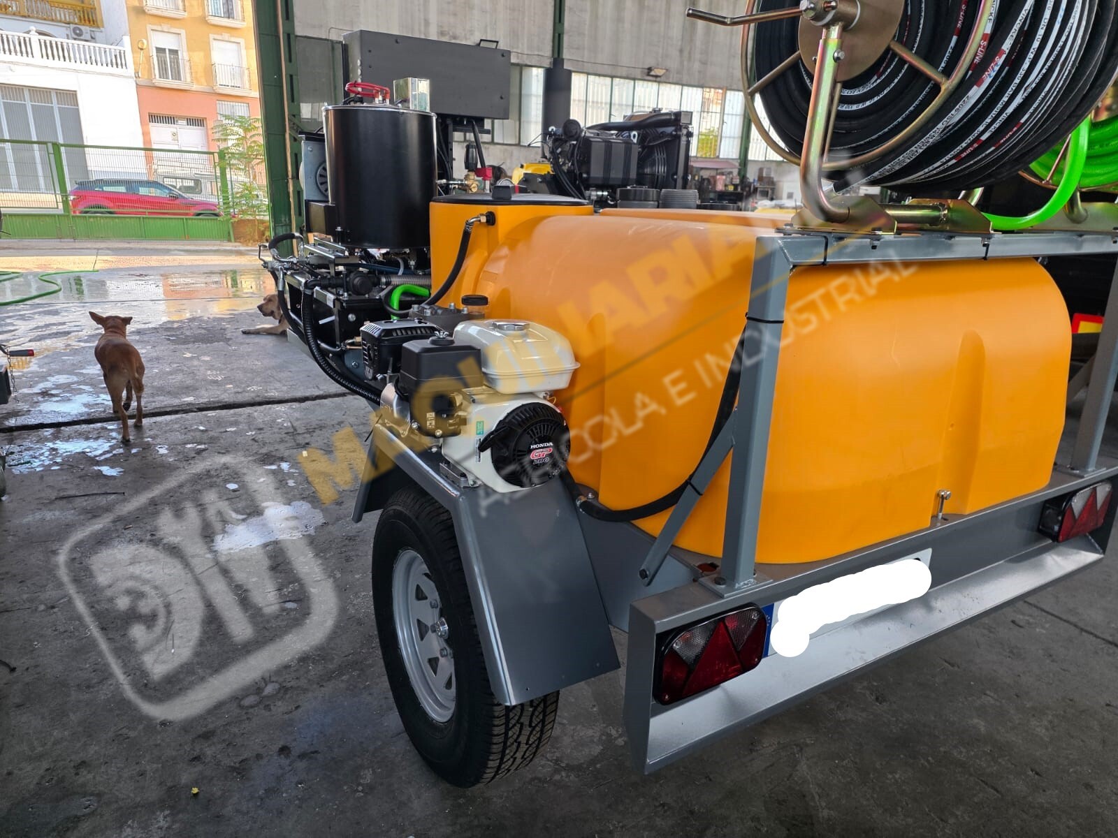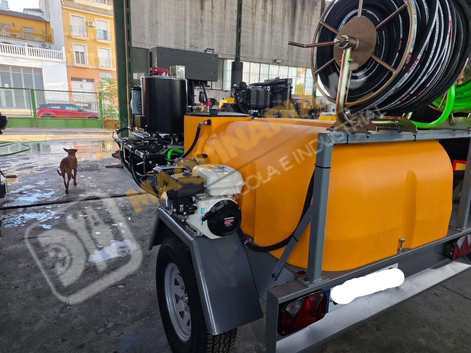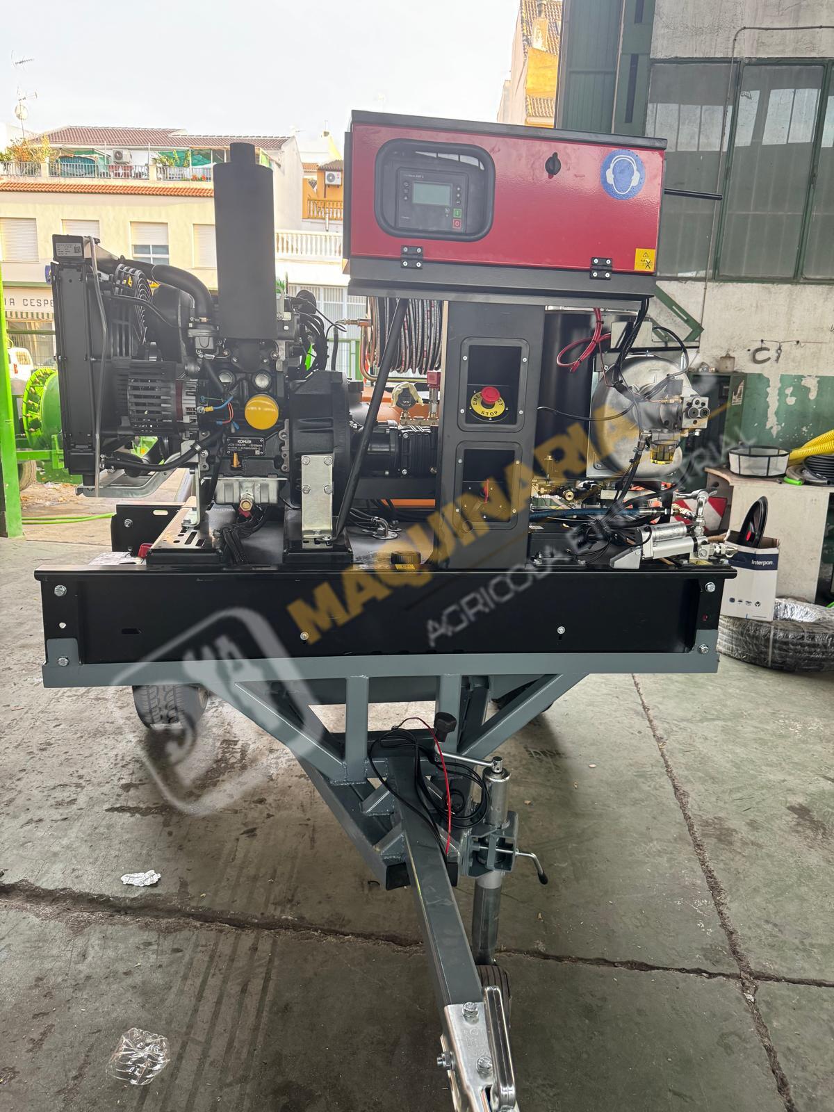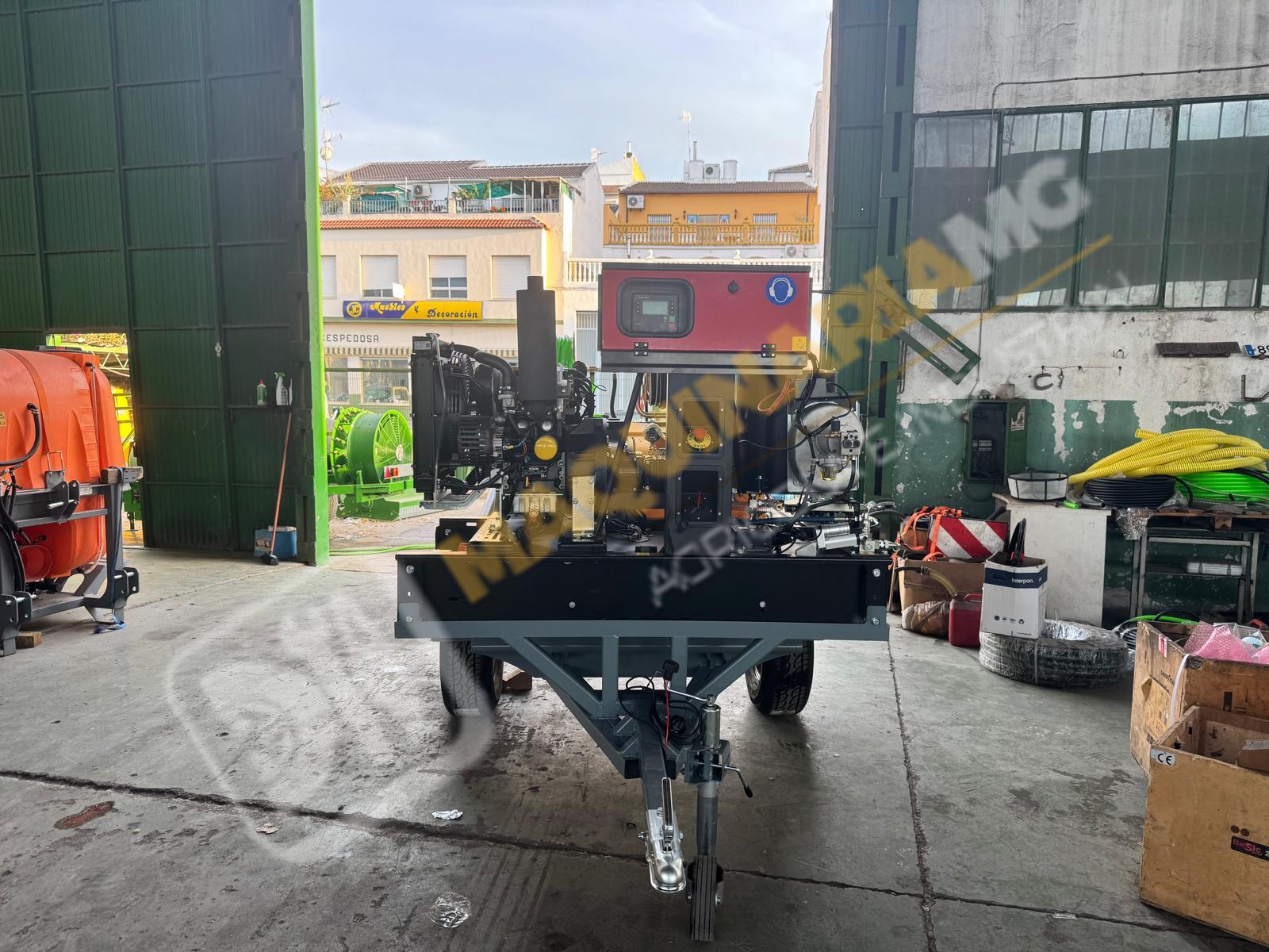 Equipo de limpieza con agua caliente 300 bares. Motor bicilindrico diesel, calentador para el agua diesel. Motor 20 CV. Bomba hasta 300 bares con 20 litros de caudal. Sistema de arranque y pare electrónico por ordenador. Motor refrigerado por agua. Enrollador de 100 metros de manguera. Pistola de limpieza profesional. Carro homologado con 1.000 litros de capacidad. Enrollador con 20 metros de manguera de suministro. Depósito de 100 litros para gasoil. Eje todoterreno de 1.500 Kg. Equipo independiente de inyección de producto con motor HONDA y bomba de 60 litros. Somos fabricantes y disponemos de varias capacidades. Para más información puede llamarnos al 627 477 965