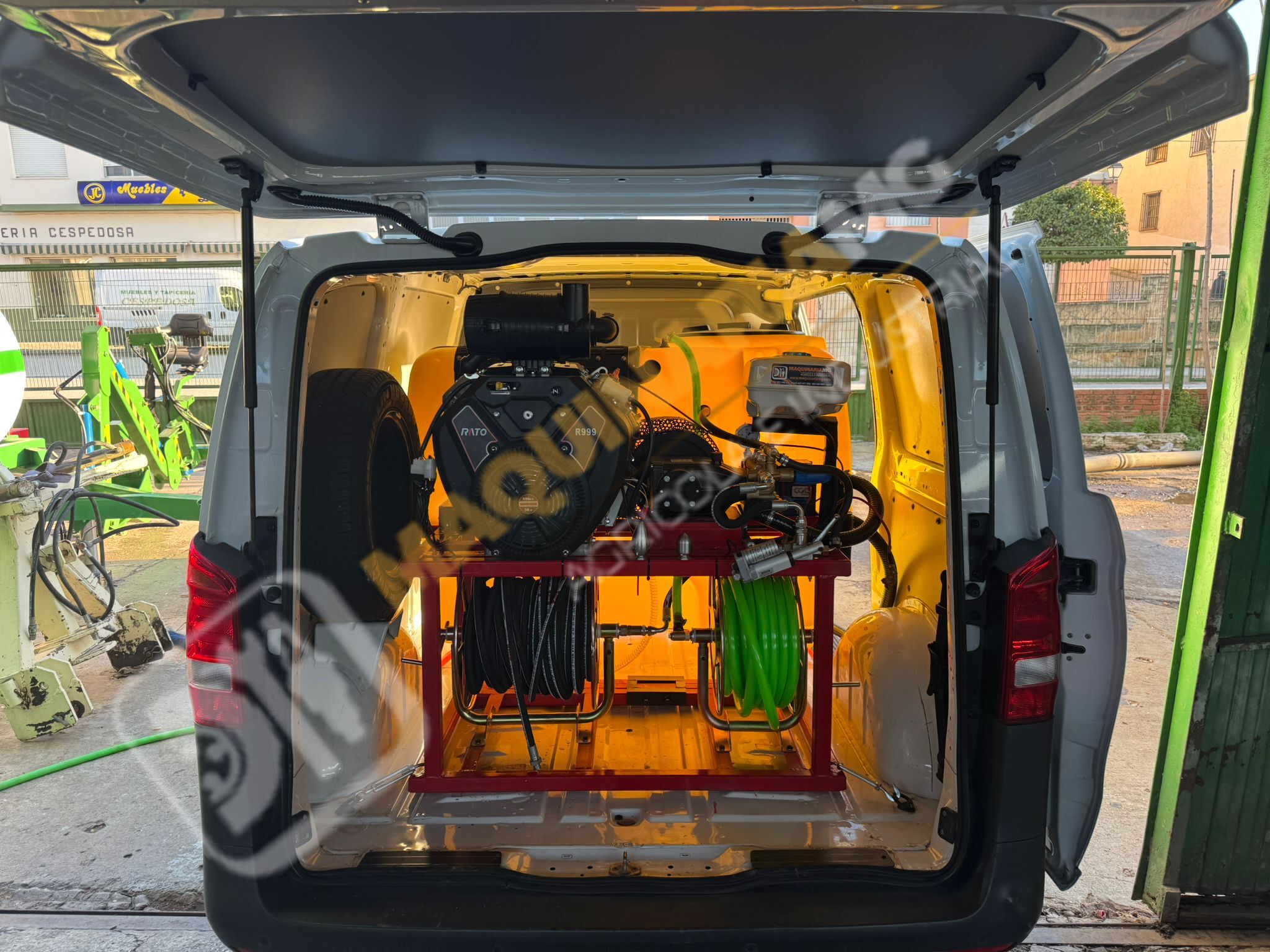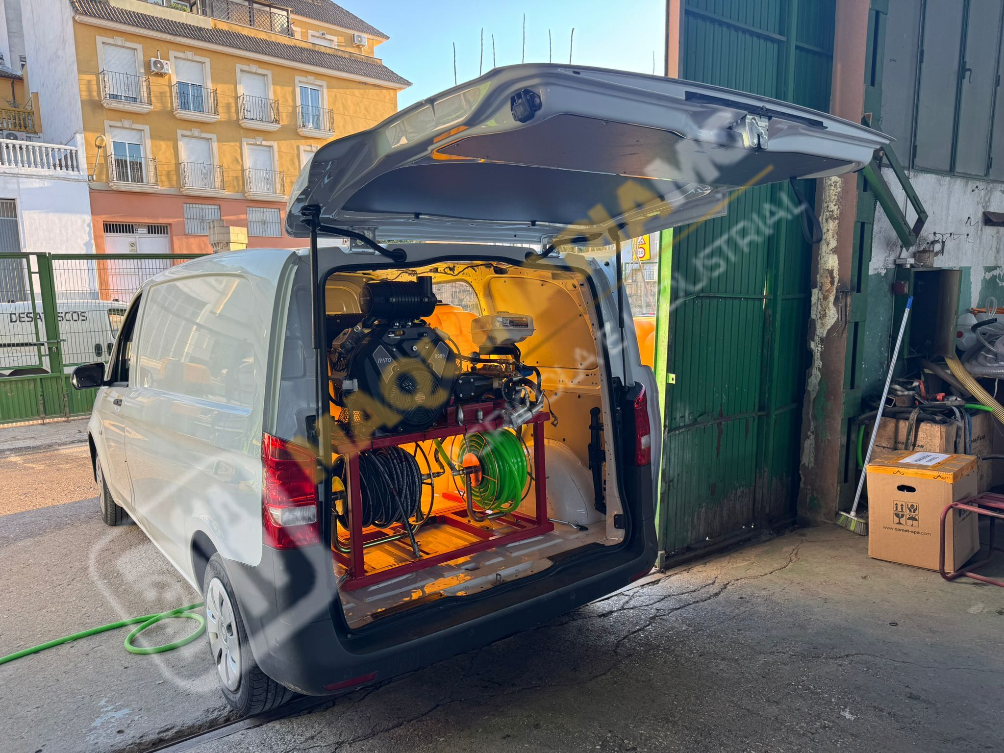 Furgonetas Vito para desatascos, limpieza y succión. Somos una empresa especializada en montar y carrozar furgonetas Vito con equipos de succión , limpieza y desatascos. Pueden elegir la capacidad del depósito según la necesidad del cliente. Motor de 35 CV Bi-cilíndrico con arranque eléctrico. Bomba Hawk de 0 a 250 Bares y 80 L. de Caudal con pistones cerámicos. Mando de 3 funciones(arranque y pare, aceleración , corte de agua). Lanza de limpieza. 50 Metros de manguera de alta presión más 1 Enrollador. 50 metros de manguera de Suministro más 1 enrollador. Juego de 2 Boquillas de Desatasco. Venturi. Para más información, puede llamarnos al teléfono 627 477 965. Entrega en cualquier punto de España.